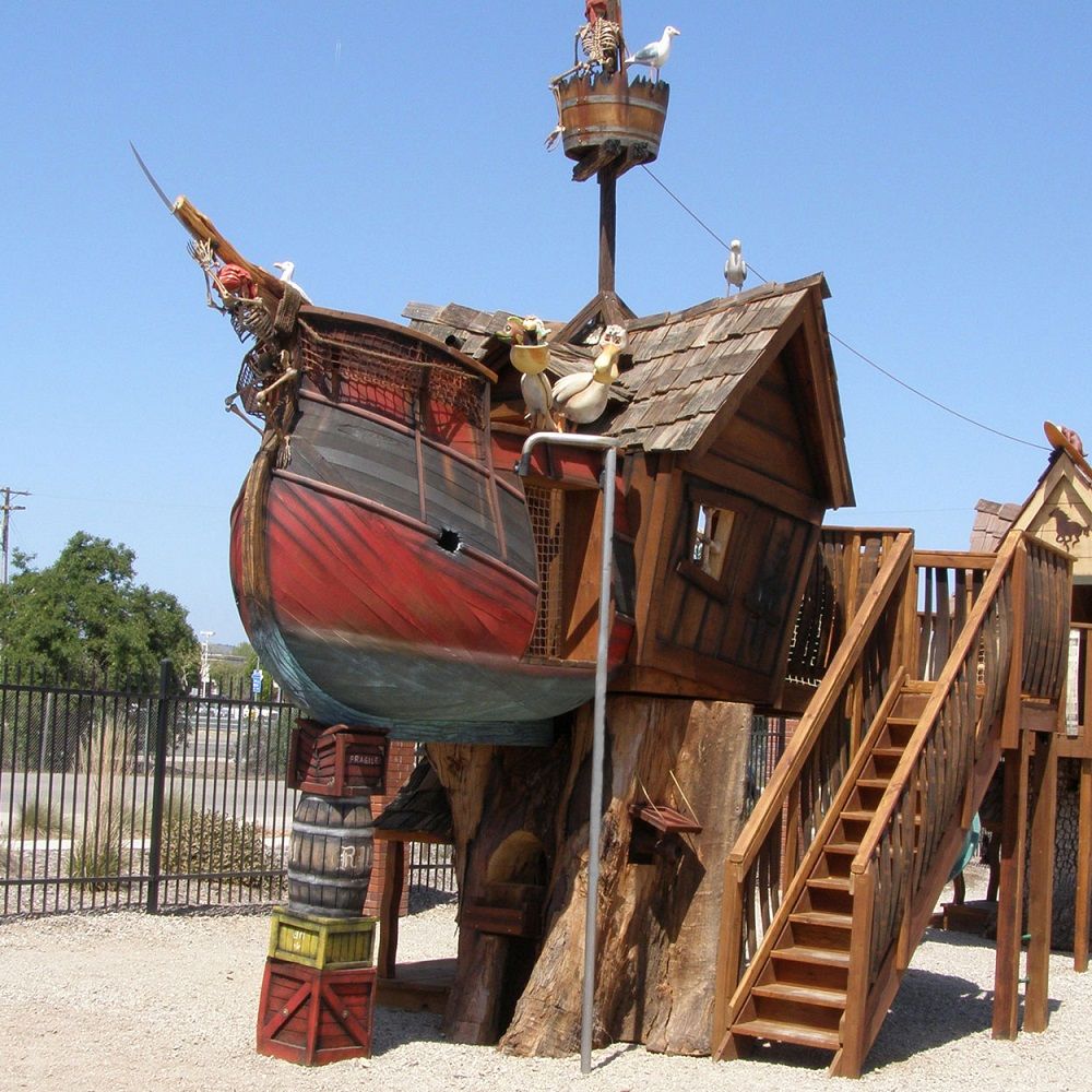 К примеру, некоторые производители создают большие дома с внутренним наполнением. Очень красиво смотрятся двухэтажные конструкции с разными горками и лесенками. Такие варианты отлично подходят для размещения на заднем дворе частного дома или на территории дачи.