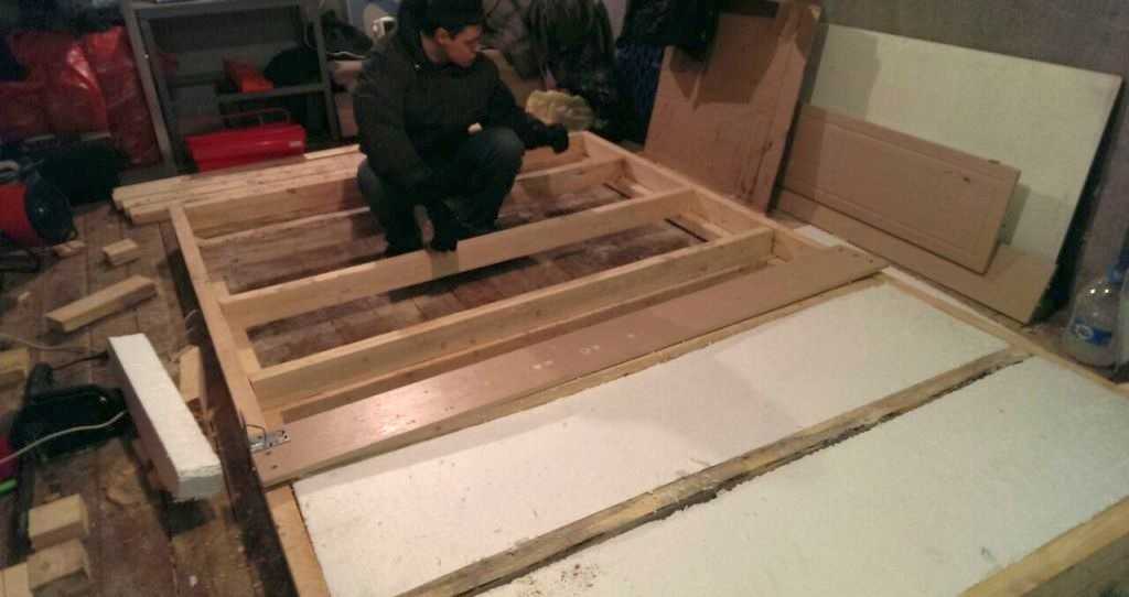 укрепите доски на каркасном основании, чтобы сформировать выровненный пол;