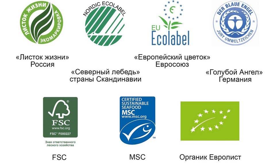 - «Органик Евролист», «Ecolabel» — европейские знаки качества;