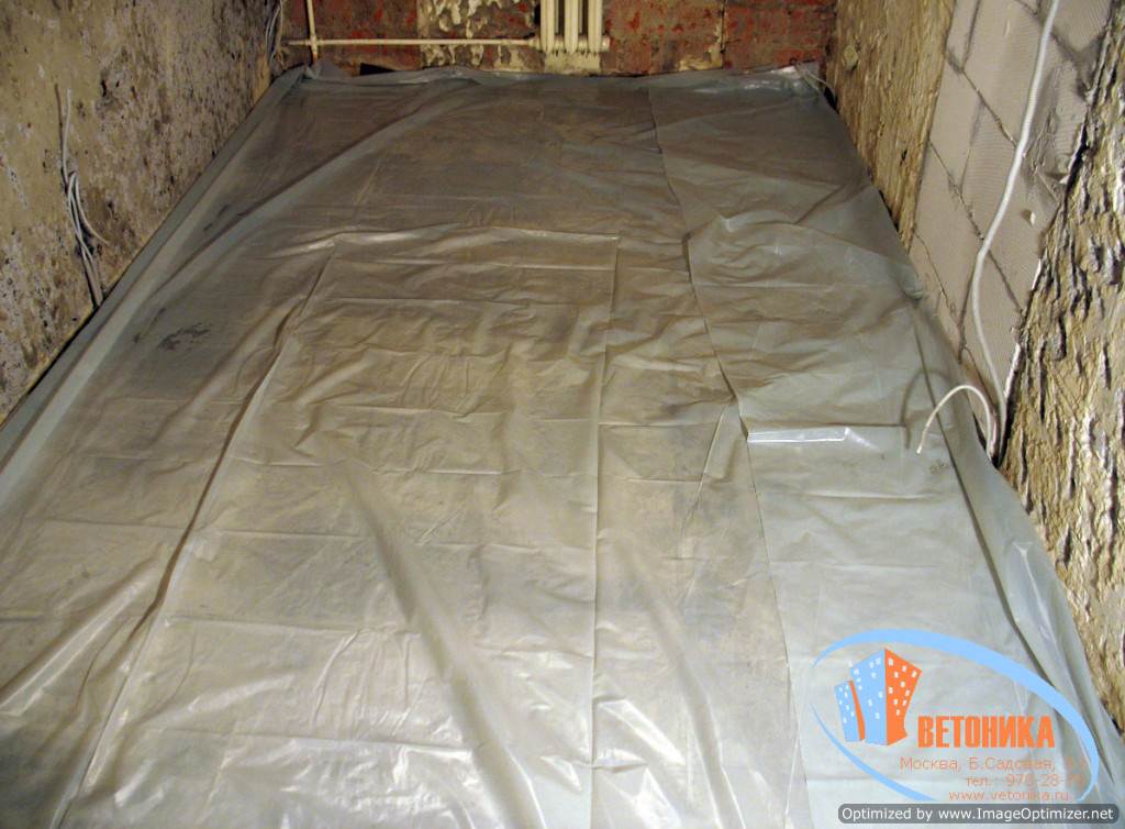 Стяжка, покрытая пластиковой плёнкой