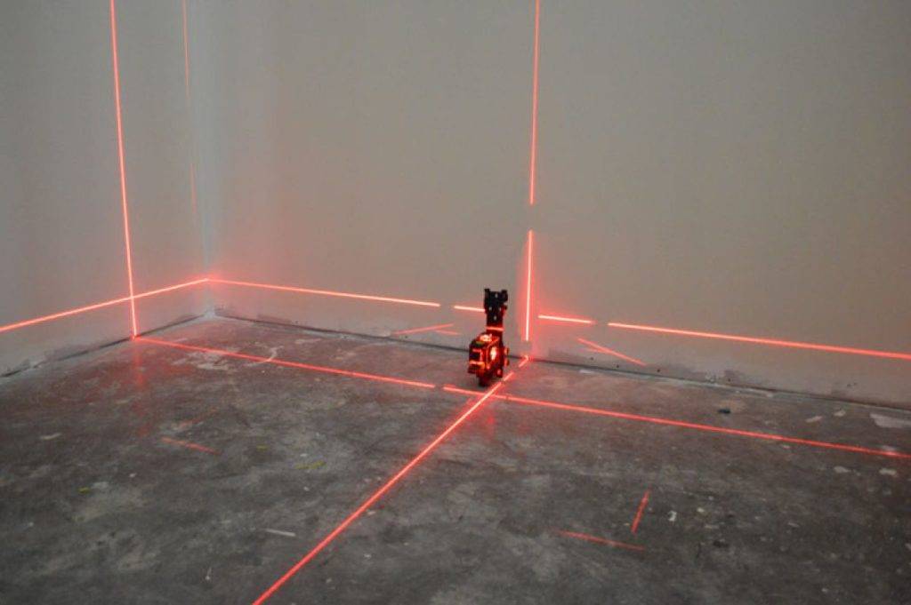 - Отмеченные на противоположных стенах риски покажут вам, куда нужно ставить все остальные маяки.