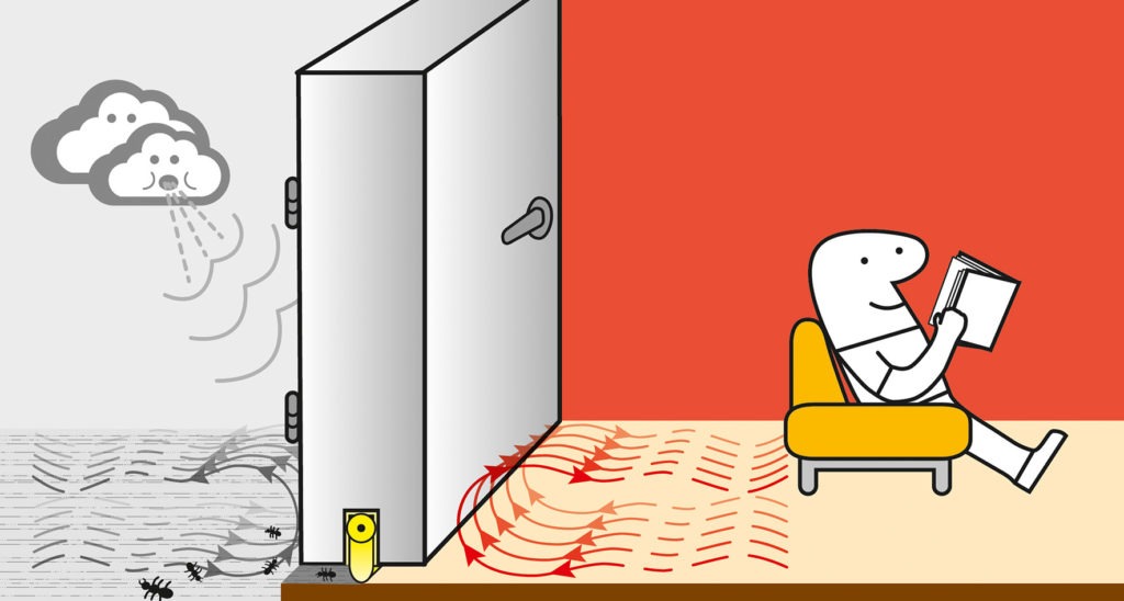 Суть в том, что такой порог устанавливается на нижнюю часть дверного полотна и начинает выполнять свои основные задачи только при закрытии двери, а в открытом виде – незаметен для взгляда. Таким образом, даже внешний вид двери не будет испорчен на фото из-за лишней вставки, а помещение будет защищено от перечисленных выше факторов.