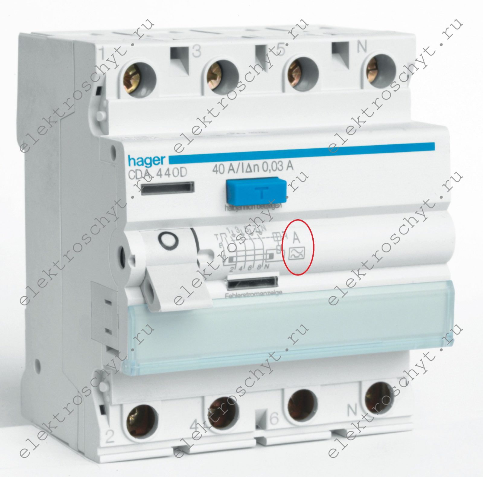 УЗО тип А реагирует, как на переменный, так и на пульсирующий ток утечки, который может медленно нарастать или возникать внезапно. Это приборы, в которых используются выпрямители и импульсные блоки питания: компьютеры, стиральные машинки, телевизоры, посудомойки, микроволновки, т.е. там, где всем управляет электроника. В некоторых инструкциях на современные электроприборы отдельно указывается, что необходима установка УЗО типа А. Пиктограмма для УЗО тип А выглядит следующим образом