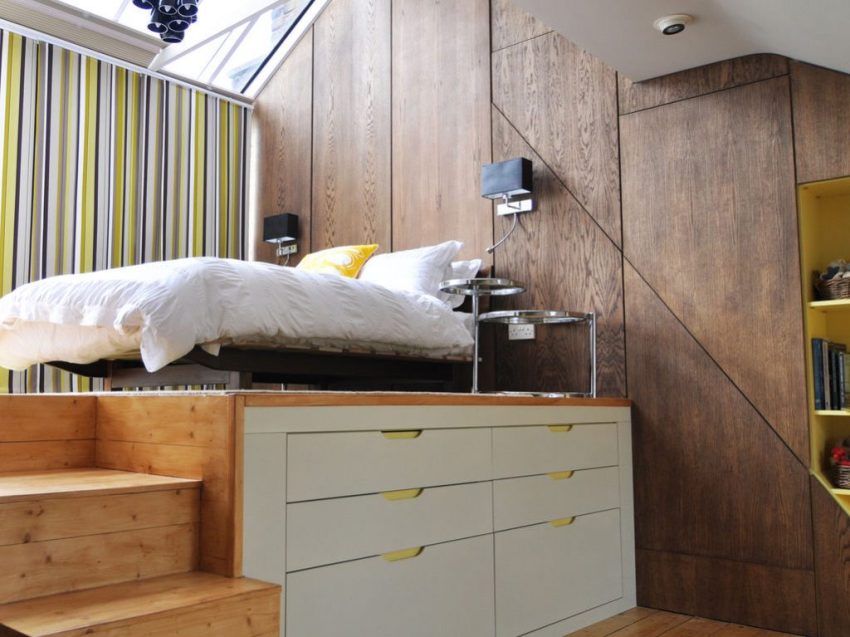 Для самых маленьких комнат с высокими потолками целесообразно использовать вертикальные конструкции
