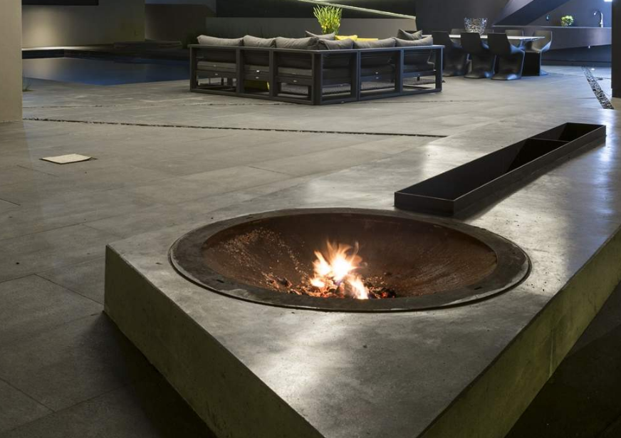 В загородном доме имеется также огромная комната, предназначенная для приема гостей и приятного времяпрепровождения всей семьей. Здесь есть все необходимое для максимального расслабления: плазменный телевизор, камин, возле которого можно расположиться на удобных креслах, открытая жаровня и небольшая барная стойка, где можно изредка побаловать себя бокалом волшебного вина.