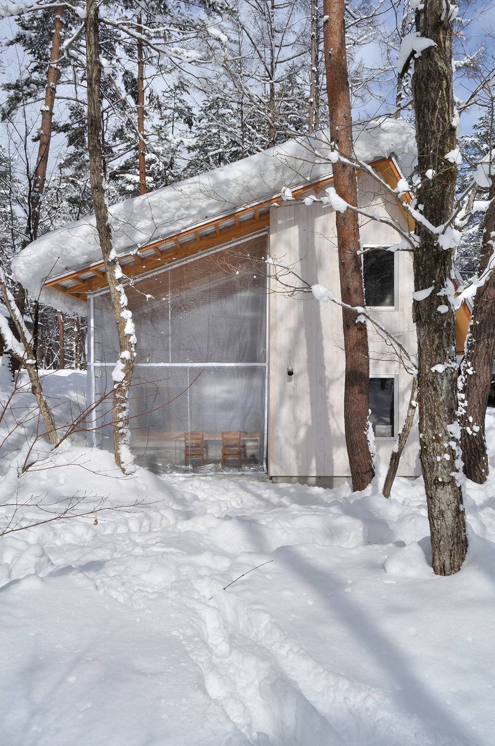 Следуя этой концепции единения Нака Тошихару и построил свою деревянную виллу в префектуре Нагано, рядом с горнолыжным курортом Хакуба.