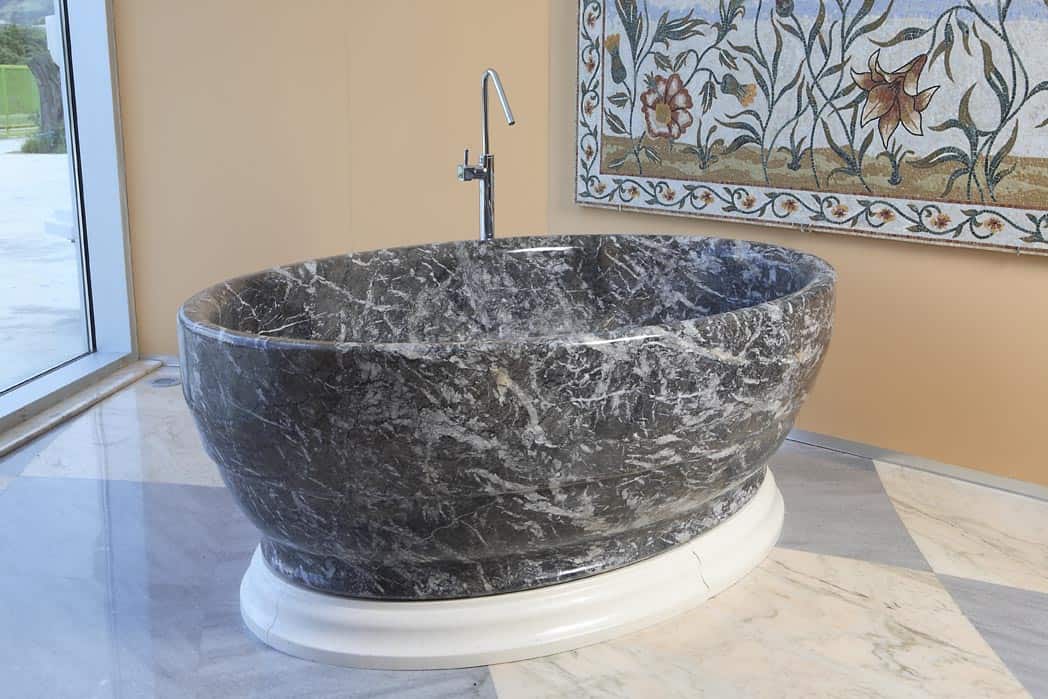 Изысканная натуральная мраморная ванная создается из цельного каменного осколка при помощи специального компьютерного оборудования, оснащенного точным механизмом порезки и шлифовки, а также компьютерным управлением. При помощи этого оборудования специалисты могут производить самые оригинальные модели ванн для любых заказчиков. Цельную чашу ванны вырезают из мраморной глыбы, после чего аккуратно обрабатывают, шлифуют и покрывают специальными материалами. Мрамор является мягким и податливым в обработке, поэтому его довольно легко обрабатывать. Плотность мрамора колеблется в пределах 2650-2900 кг/м3.