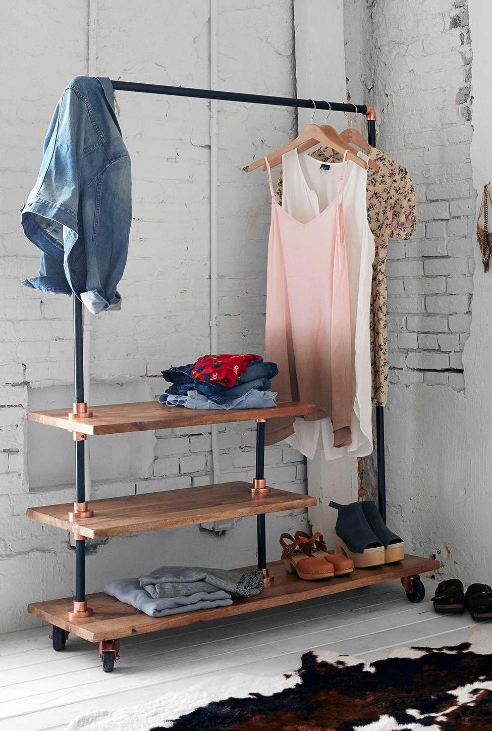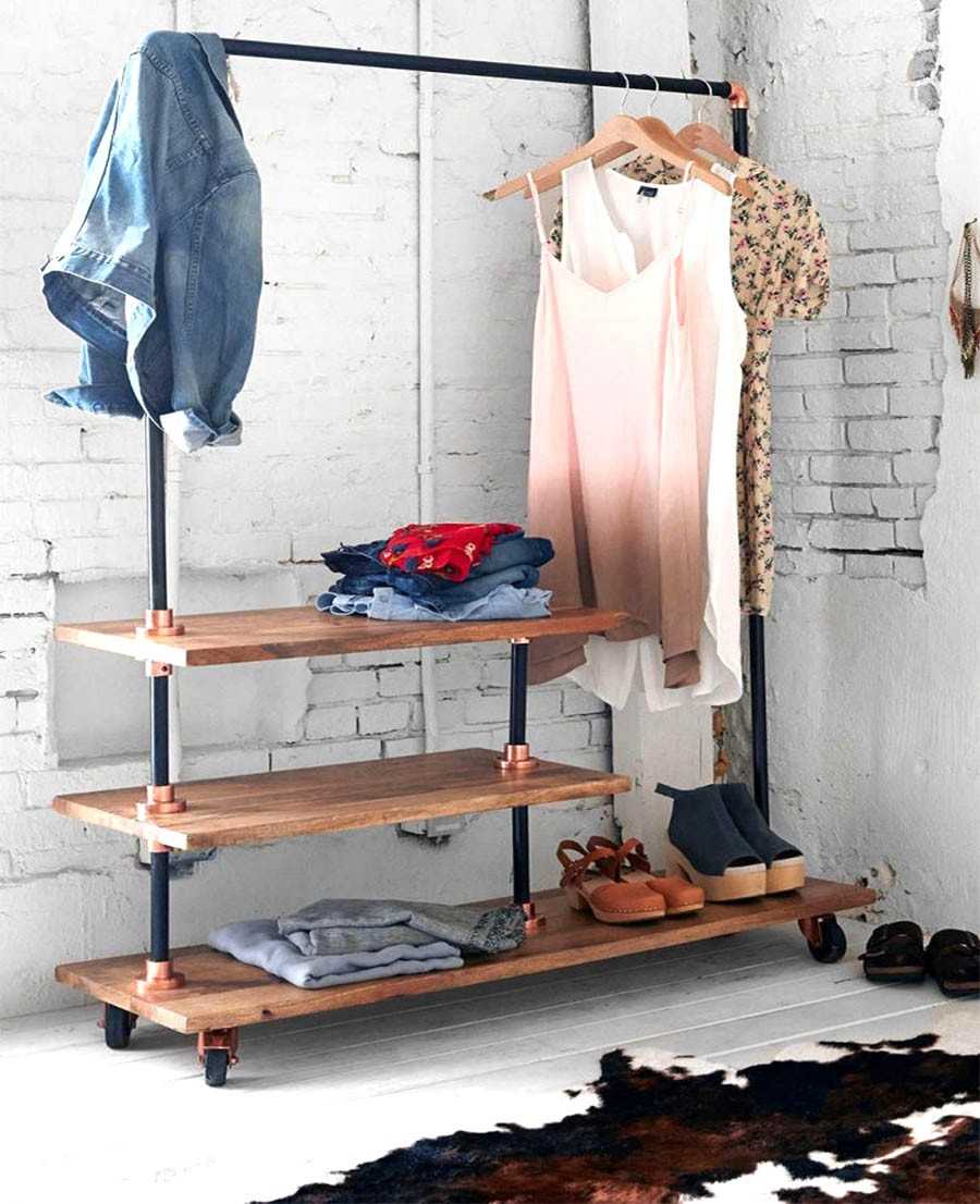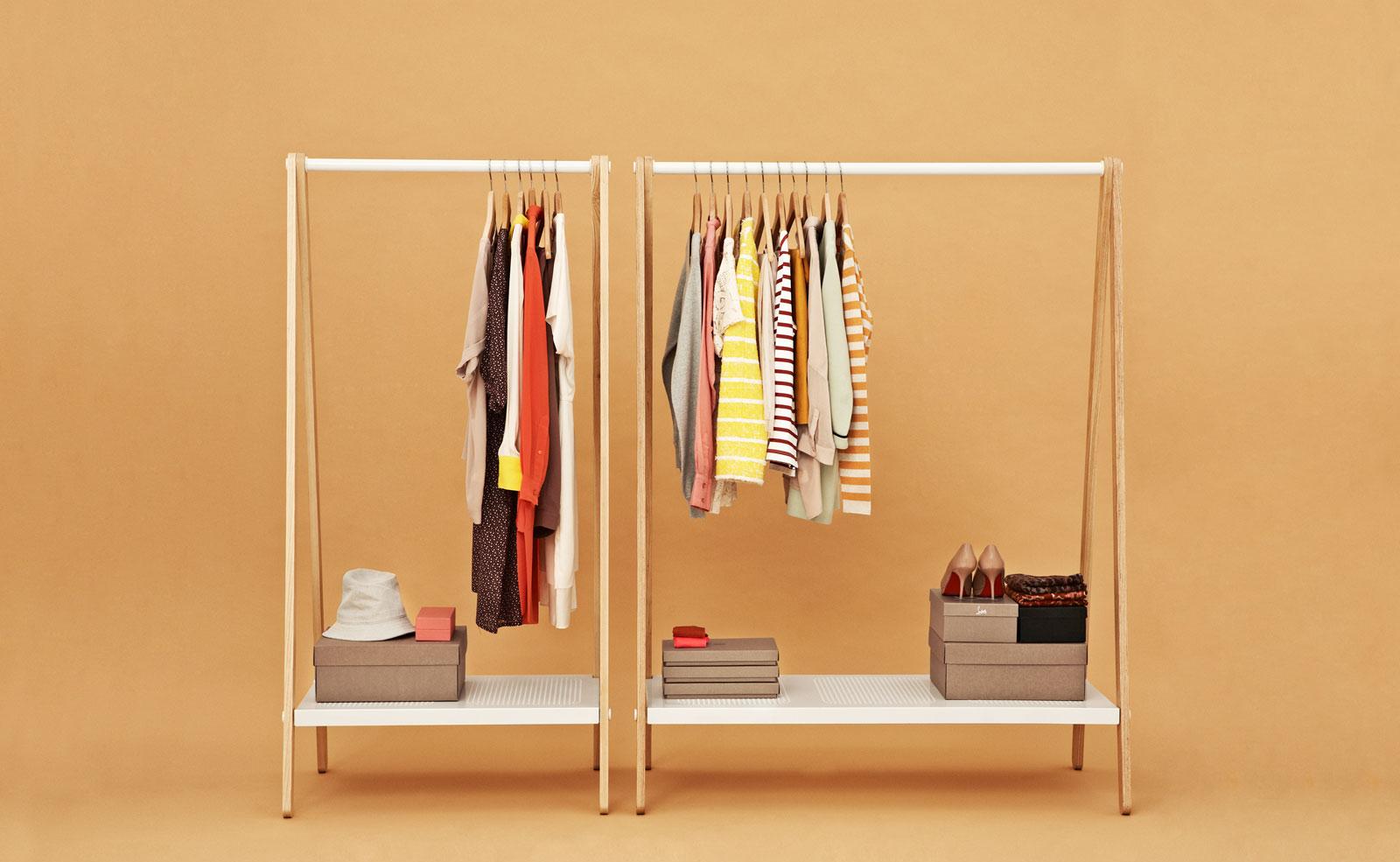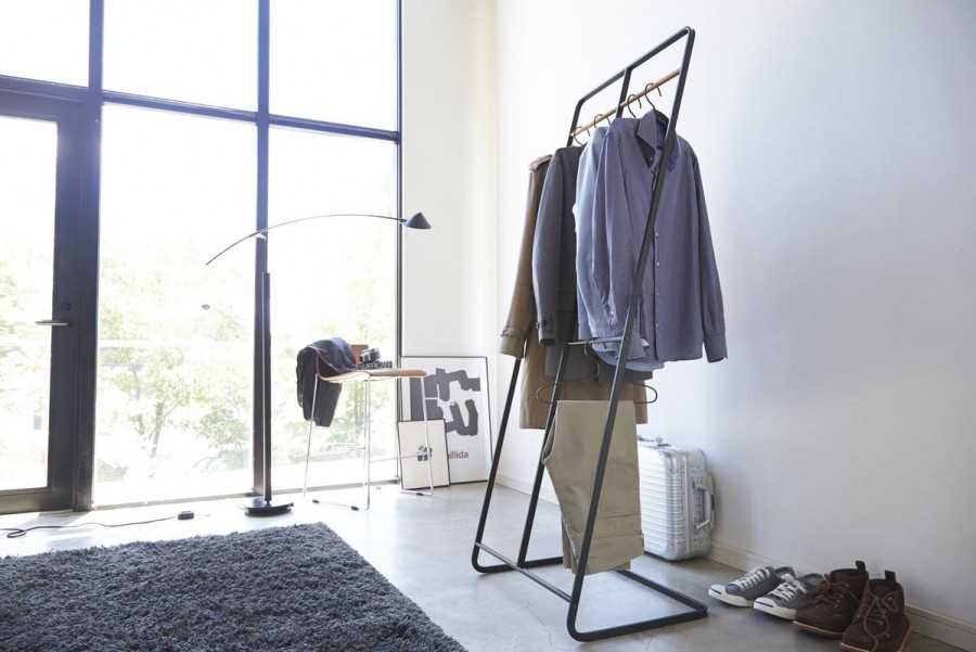 Для тех, кто не имеет шкафа в квартире, дизайнеры придумали удобные стойки под плечики для одежды.