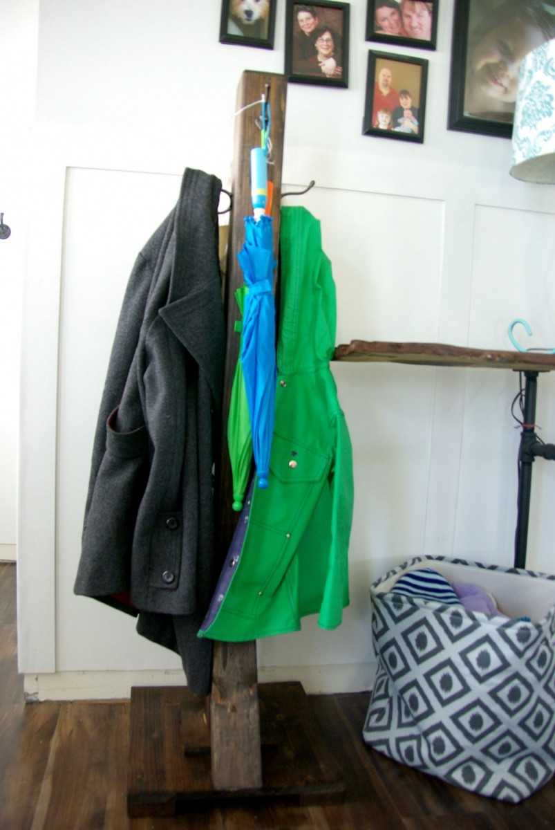 Стойка может заменить шкаф. Она смотрится стильно и не занимает много места.