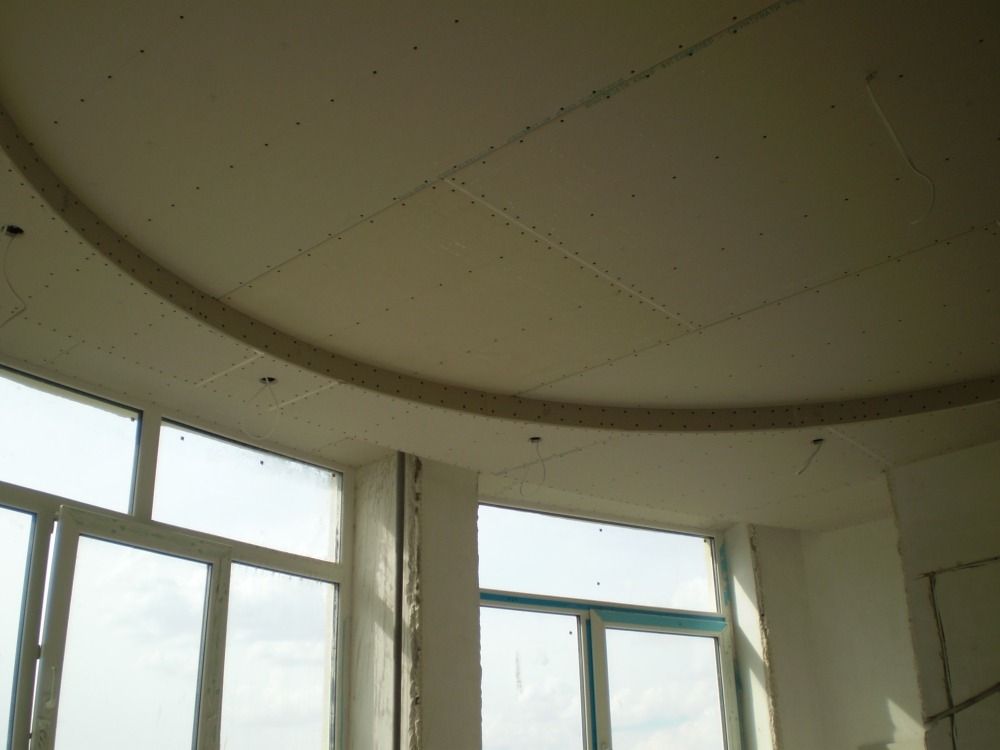 Сухая гипсовая штукатурка во влажном состоянии с толщиной 9,5 и 12,5 мм очень пластична, а в сухом — наоборот. Это обстоятельство дает возможность монтировать панели в любые элементы разной конфигурации: своды, цилиндры, арки из гипсокартона, купола. В этом — лист гипсокартона мечта дизайнера.