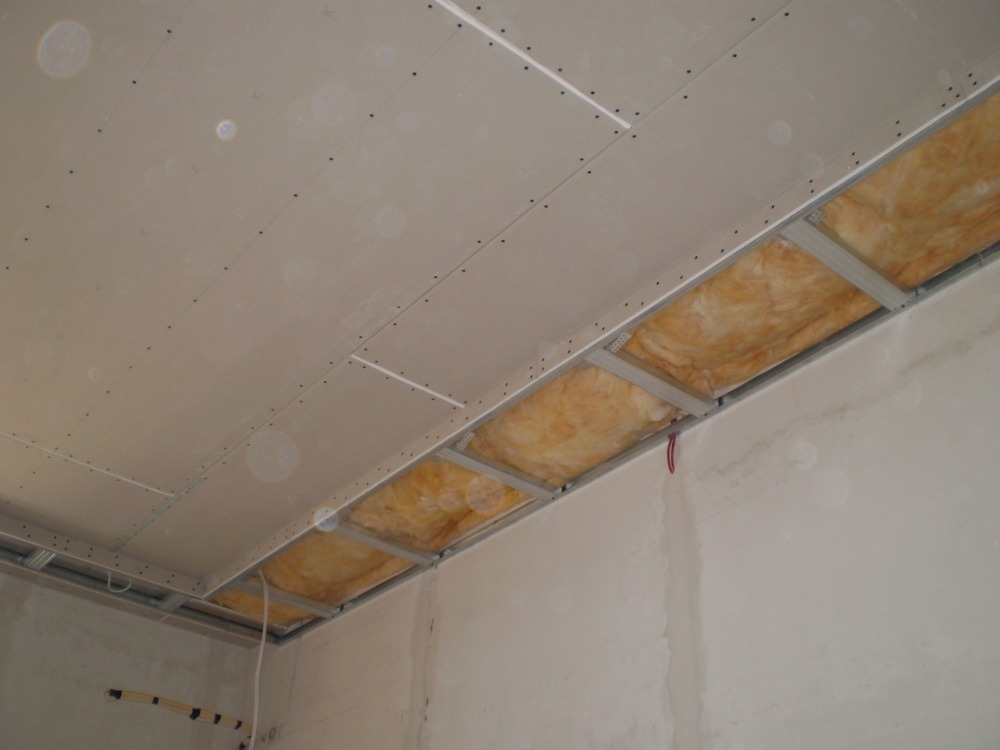 Различного типа стекловата в матах и плитах довольно часто используется для теплоизоляции в сочетание с листами ГКЛ, монтированных на профиль. Она изготавливается из тонких нитей стекла, образующиеся при высоких температурах