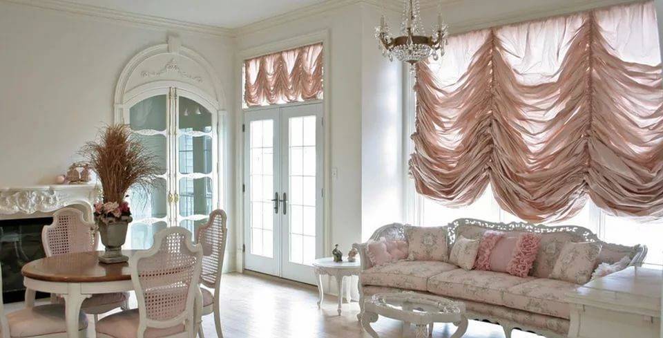 Совет: объемные многослойные драпировки лучше всего смотрятся именно на больших окнах.