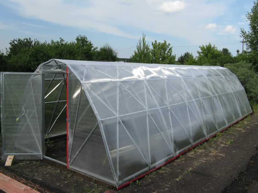 Поликарбонат — современный материал для сооружения парника с высокими эксплуатационными характеристиками. Он значительно прочнее стекла или пленки. Достаточно гибок, поэтому ему можно придать различную форму. При этом он стоит не очень дорого, что делает его лидером среди материалов для изготовления парников для различных овощей от огурцов, перцев, помидор до зелени..