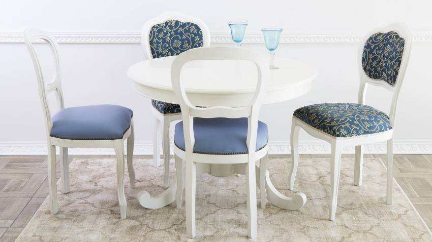 Стулья с отделкой плохо переносят прямые солнечные лучи, особенно на открытом воздухе – цветные краски выгорают, а лак может растрескаться.