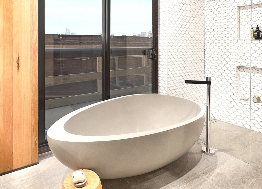 Если позволяют размеры помещения, можно использовать нетрадиционные решения для дизайна – это может увеличить комфортность пользования ванной и придать интерьеру эксклюзивность. Например, отдельно стоящая ванна, особенно из натуральных материалов, сразу же подчеркнет солидность и достаток своего владельца.