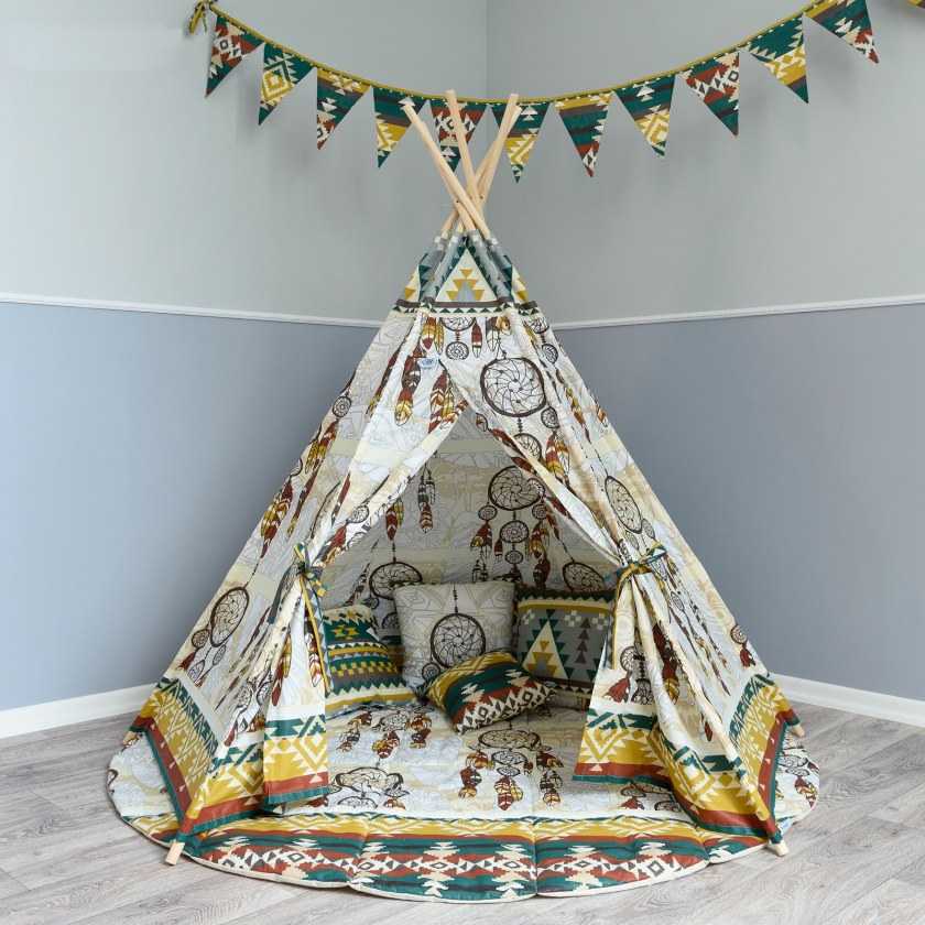 Важно только помнить, что вигвам – это весьма тесное «помещение», в котором ребенок будет проводить много времени. Ткань должна свободно пропускать воздух