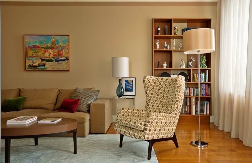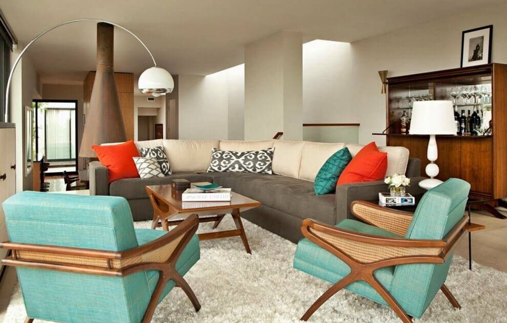 Такие направления как минимализм, лофт и скандинавский безупречно комбинируются со стилем 60-х в интерьере. Если жилье оформлено в современной стилистике, его обновление будет лёгким и бюджетным, учитывая, что предметы той эпохи ещё не успели превратиться в винтаж, и сохранились во многих домах. Для преображения понадобится кресло, стеллаж или письменный стол.