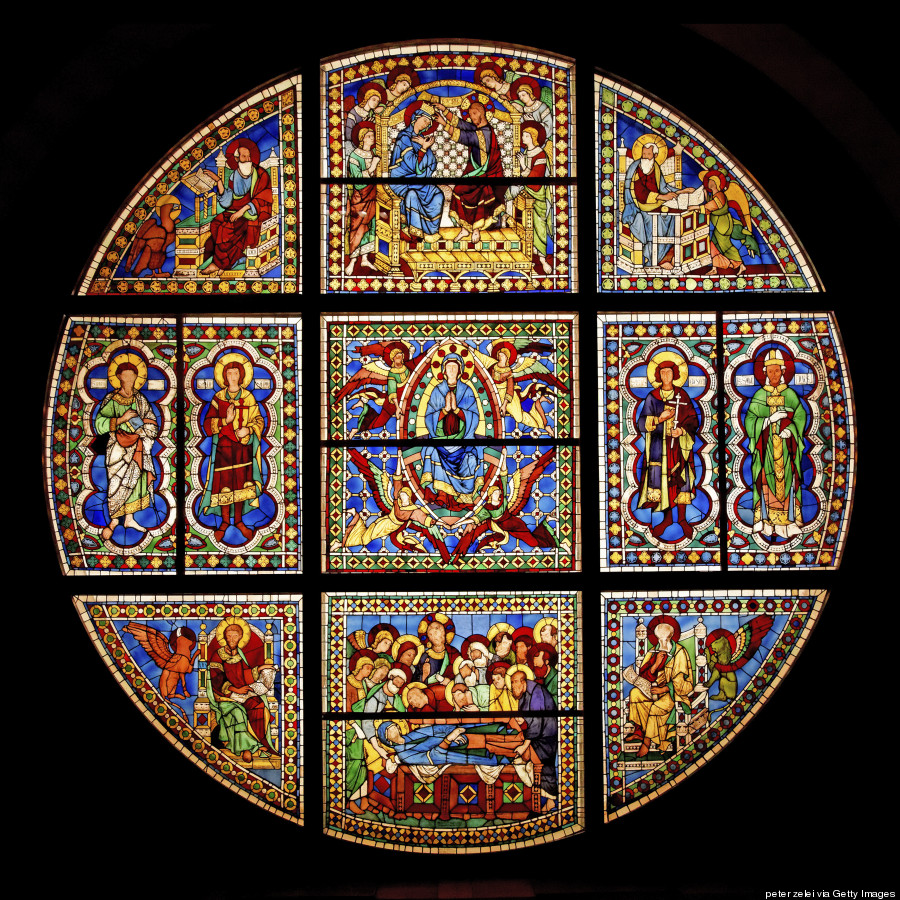 Эффектно смотрятся витражи с мелкими деталями, изображающие картинку из калейдоскопа. Мелкие витражи удивительно украшают окна.