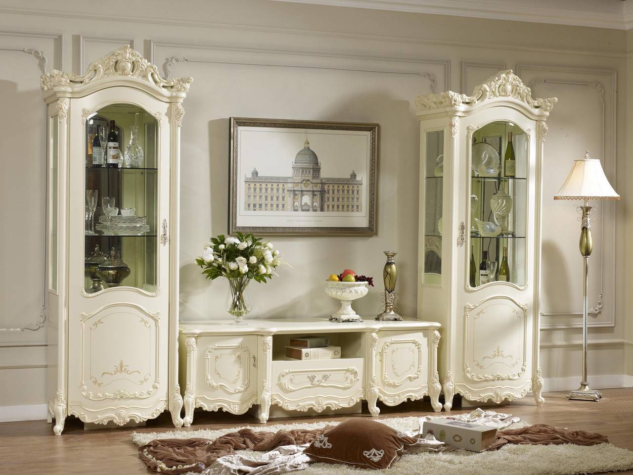 Витрины из дерева для посуды в гостиной подходят для классических гостиных