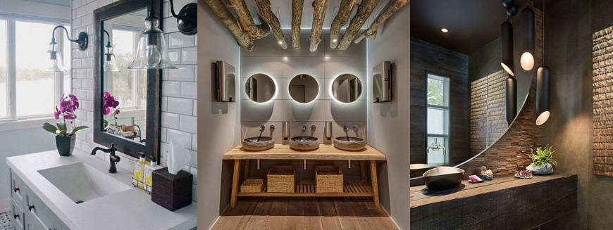 Дополнительно зону раковины/зеркала украшают подвесными светильниками. Помните, что если плафон не пропускает свет, то световое пятно будет на поверхности столешницы, в которую он светит. Для функционального освещения плафон должен пропускать свет от источника во все стороны (диффузный свет) и не давать бликов в глаза.