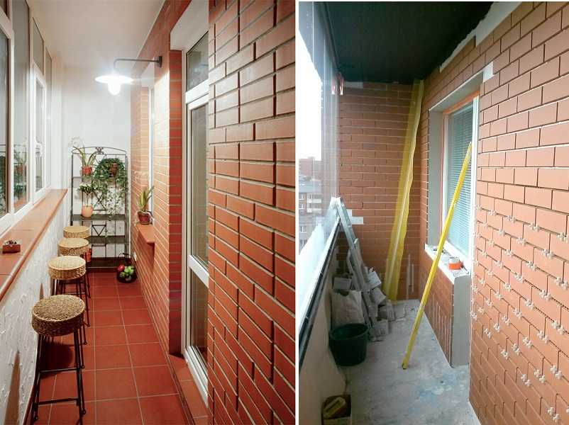 Такая облицовка представляет собой плитку, поверхность и выделка которой напоминает натуральный природный камень. После облицовки создается видимость кирпичной или каменной кладки на стенах лоджии.