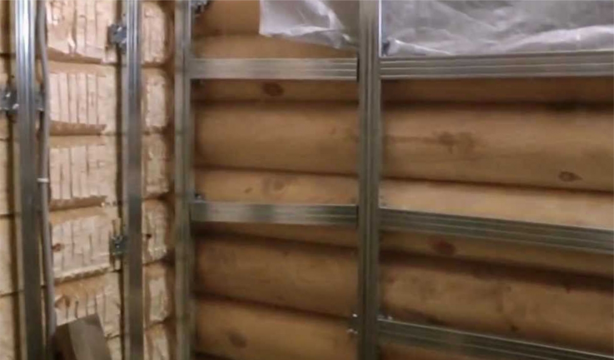 В квартире и домах с постоянным отоплением для выравнивания стен часто используют гипсокартон. Плиты имеют гладкую поверхность и под обои достаточно зашпаклевать только стыки и вмятины от саморезов. Крепить большие листы можно прямо к стенам, если они ровные. Гипс плохо пропускает воздух и набухает от влаги. Поэтому для неотапливаемой дачи, стены которой сложены из бревен, его надо укладывать в несколько слоев, по скользящей схеме. Штукатурка и защитная краска исключают термин «недорого».