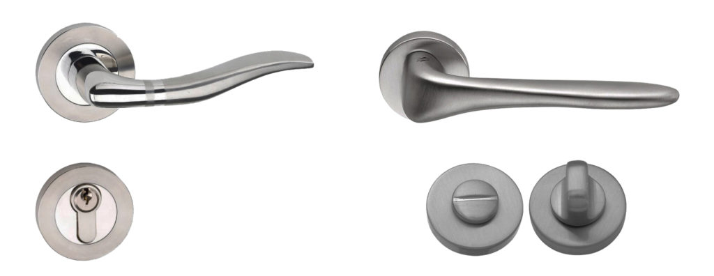Обе части ручки имеют специальные отверстия под винты. Эти элементы прикладываются к внешней и внутренней стороне двери и фиксируются между собой. Далее нужно установить декоративное кольцо, после чего на ручку необходимо нажать до появления характерного щелчка, который сигнализирует об окончании установки.