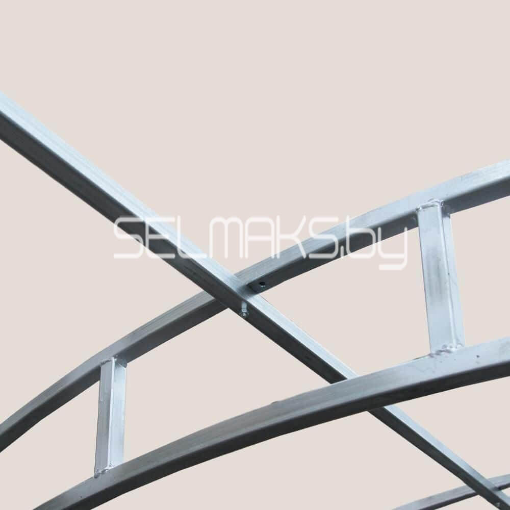 Перемычки сделаны из стальной трубы сечением 30х30 см. У дуг сечение поменьше – 30х20 см, а у стяжек 20х20.