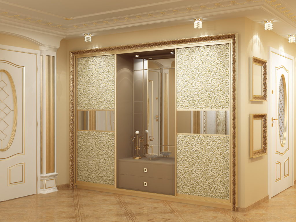 С нишами. Между дверцами может располагаться нише, в которую можно поставить скамейку или комод. Вешалку для шляп и сумок, ключницу и т.д.