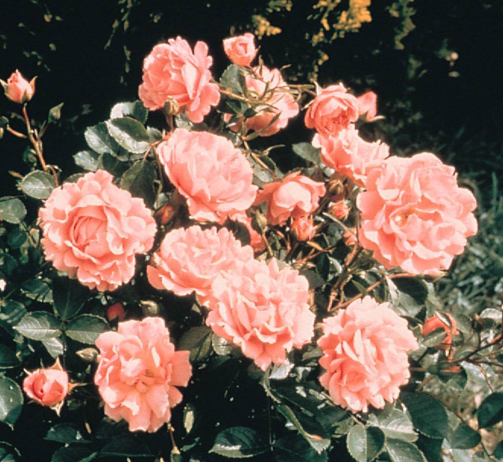 Плетистые розы для Урала. Куст розы Rosarium Uetersen достигает высоты 3,5 м, однако отлично выдерживает и обрезку до двух метров