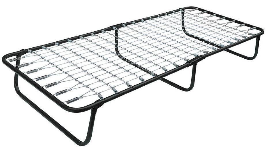 Одним из подвидов данных раскладных кроватей является конструкция без пружин. Она представляет собой стальной каркас с натянутым на него плотным эластичным материалом. В основном это текстилен, структура которого представляет особо прочную вязку.