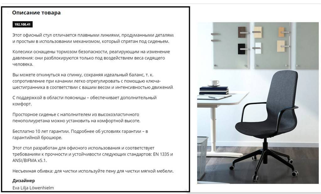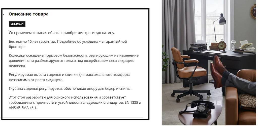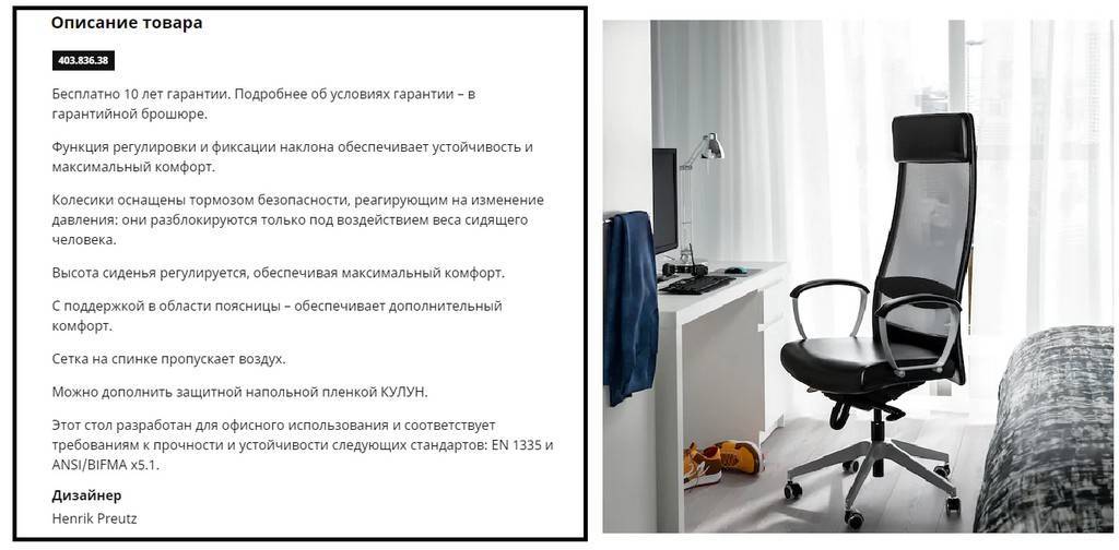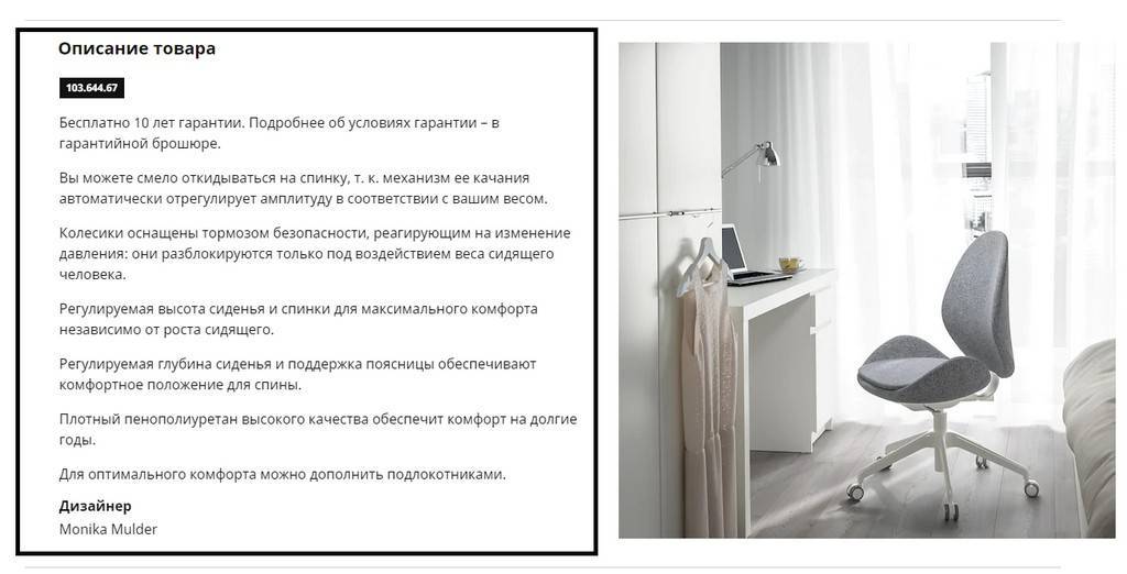 Немаловажно, что в каталоге ИКЕА или на сайте к каждой модели помимо фотографий во всех цветовых вариантах также прилагается и подробная индивидуальная инструкция по уходу за стулом.