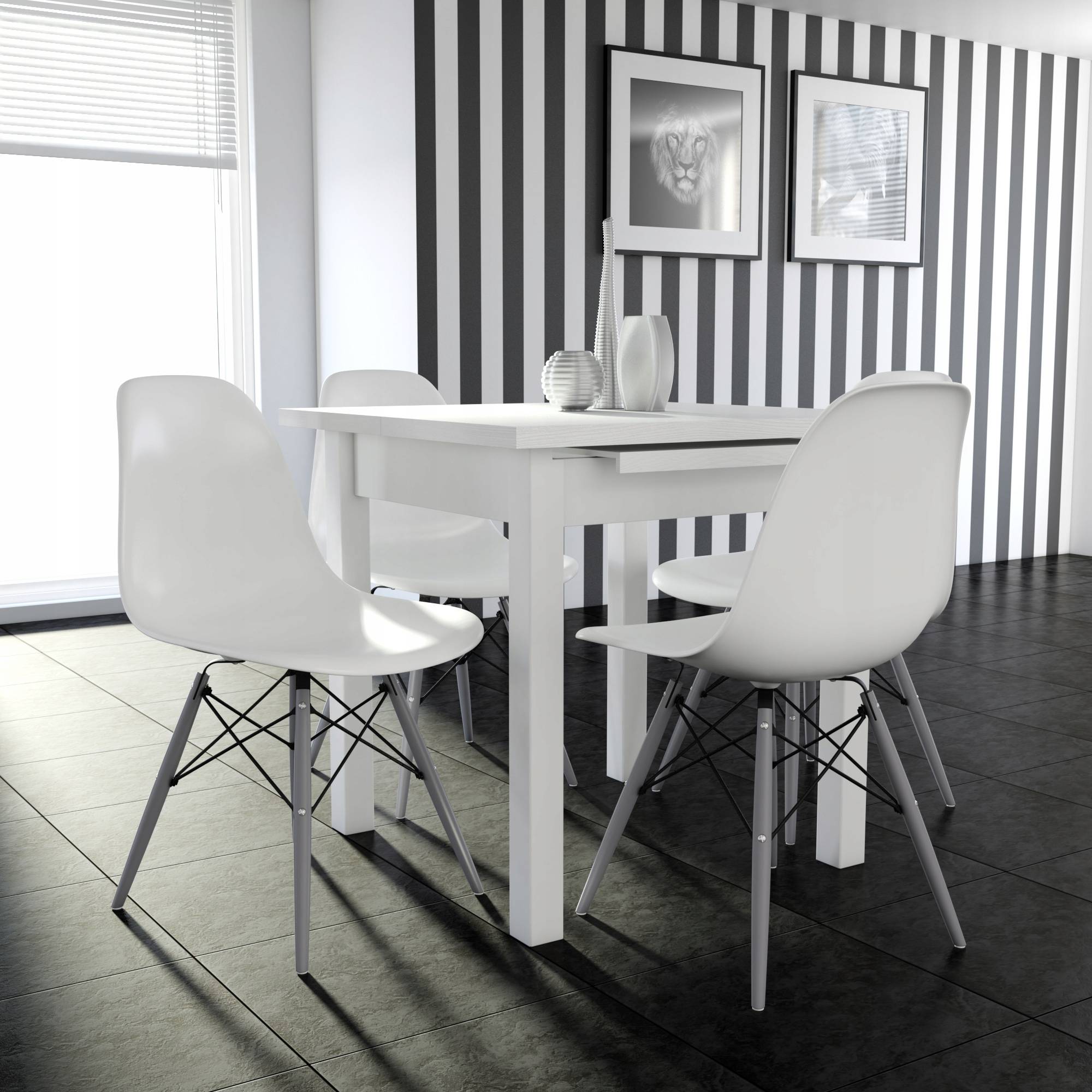 Бюджетная и очень сдержанная модель стола ИКЕА Мельторп (цвета: белый, светлое мокко, поверхность — меламиновое покрытие). Такие столики можно мыть, за ними легко ухаживать. Но отметим, что они компактны и не раскладываются, относятся к категории пристенных столов, поэтому максимальная их вместимость составляет 3 человека.