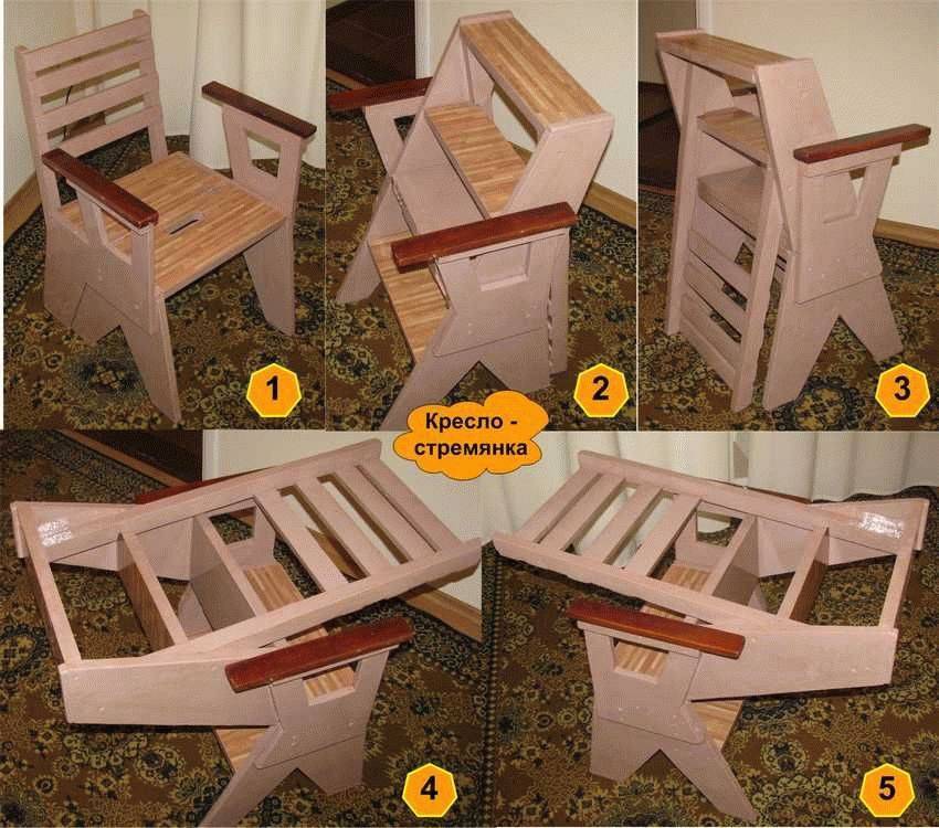В каждом доме нужны стулья. Их не бывает много, особенно в тех гостеприимных домах, где всегда многолюдно. И уж точно никогда не будет лишним такое интересное изобретение, как стульчик, который превращается в стремянку. Полезных свойств у стула-трансформера много: