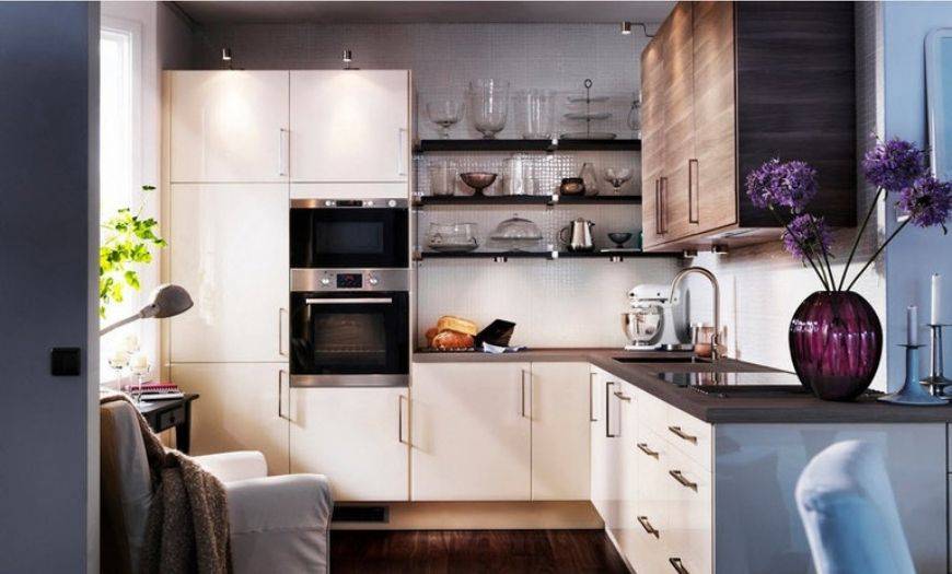 Малогабаритные кухни в хрущевке нуждаются в предварительной планировке. Они предусматривают многофункциональность, удобство и небольшие габариты. Часто в таких помещениях используется мебель-трансформер.