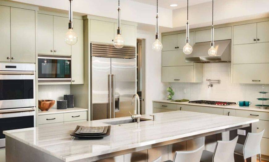 Светлые оттенки подойдут для небольшого и плохо освещенного помещения — для визуального расширения пространства. Однако их можно использовать и в просторном интерьере кухни.
