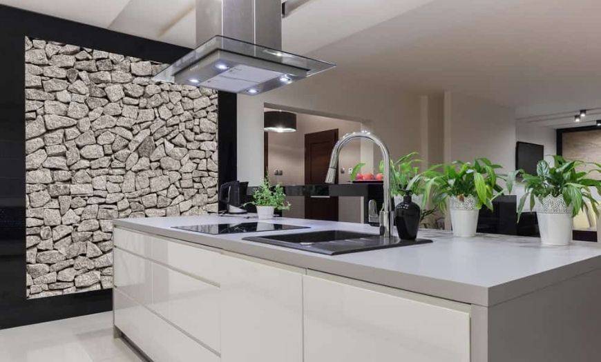 Дерево хорошо сочетается не только с металлом. Сочетание дерева и камня также подойдет для модной кухни 2021 года. Вы можете положить, например, на каменный пол, каменную столешницу или фрагмент стены, например, над столешницей. В сочетании с деревянной мебелью или столешницей из массива вы получите интересный, модный эффект.