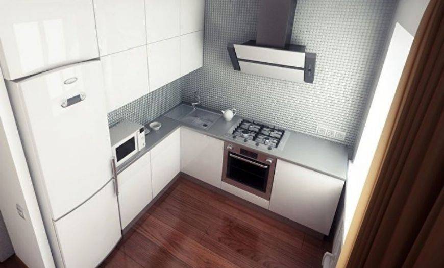 Мудрите с планировкой. С дизайном в маленькой кухни усложнять не надо, а вот варианты планировок следует рассмотреть самые безумные. Иногда могут получиться очень интересные варианты расстановки мебели.