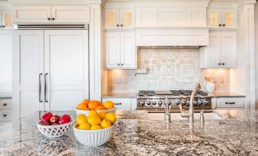 Столешницы из гранита являются очень прочными, выдерживают высокие температуры и идеально подходят для тех хозяюшек, которые часто радуют свою семью кондитерскими изделиями (тесто не прилипает к холодной поверхности гранита).