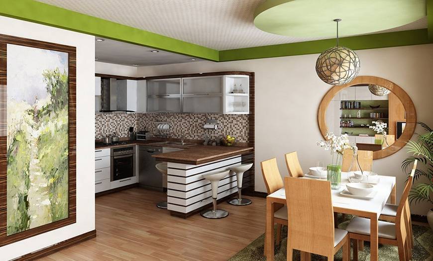 Чтобы одноуровневая кухня была не только практичной, но и красивой, её нужно как следует оформить.