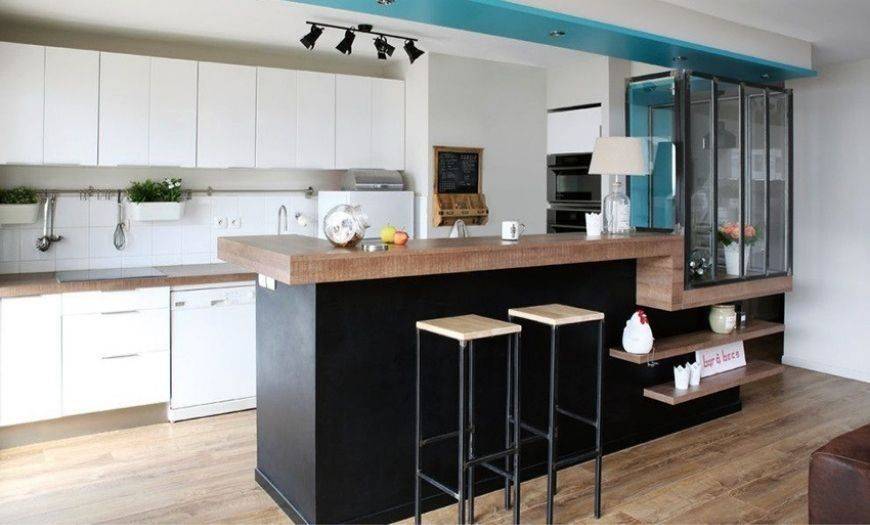 Остров очень деликатно разделит пространство кухни-столовой или кухни-гостиной.
