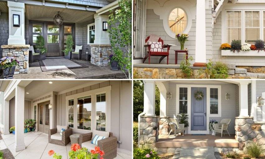 Строгий и выдержанный дизайн крыльца с навесом, фото