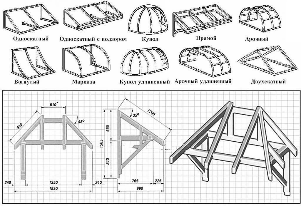 Изготовление и монтаж козырька из поликарбоната: По форме и материалу козырек должен соответствовать художественному решению крыльца и всего здания в целом. Проще всего сделать односкатный козырек. Он подходит коттеджам любого типа. Но гораздо интереснее смотрятся более сложные варианты навесов. Например, если применяется покрытие из поликарбоната, лучше сделать козырек купольной или арочной формы. Если же дом выполнен в стиле деревенской избы и имеет традиционную двускатную кровлю, он будет выглядеть еще более выразительно, если сделать двускатный навес, покрытый тем же материалом, что и крыша.
