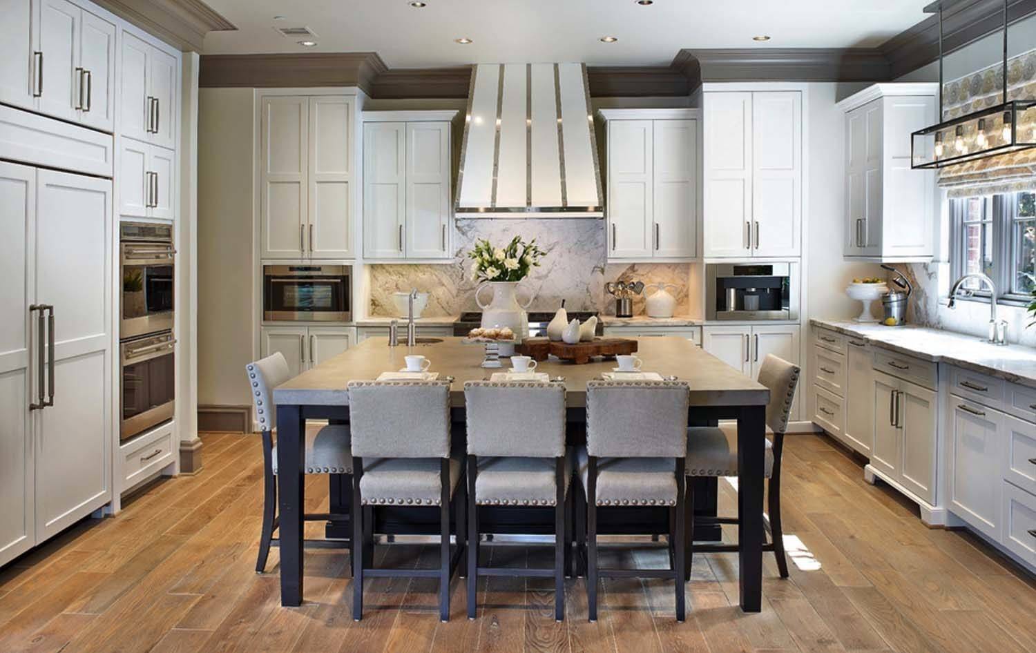 Отделенные друг от друга рабочие и обеденные зоны создают правильную атмосферу, иначе кухня выглядит перегруженной, не важно сколько в ней квадратных метров.