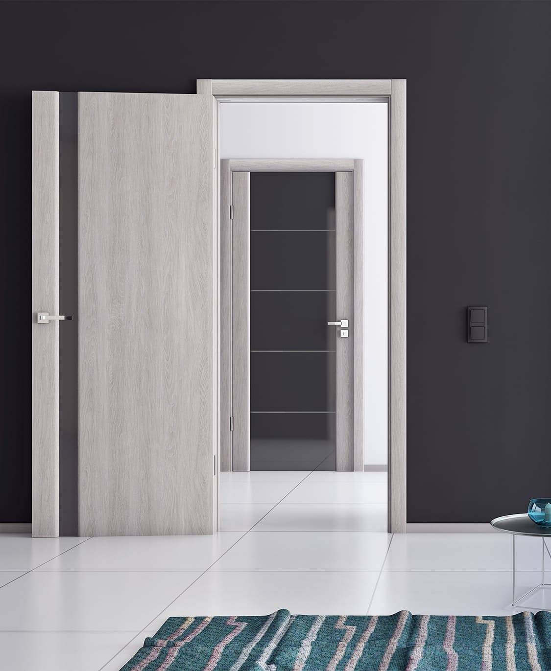 Спокойный и лаконичный вид серых дверей выступает идеальным фоном для любой комнаты в квартире и придает ей солидности. Грамотное применение многообразия серой палитры – прекрасный способ создавать невероятно уютные, оригинальные и очень красивые интерьеры.