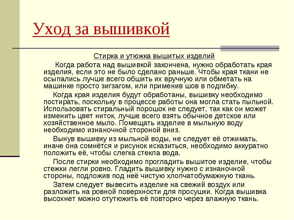 Уход за вышивкой