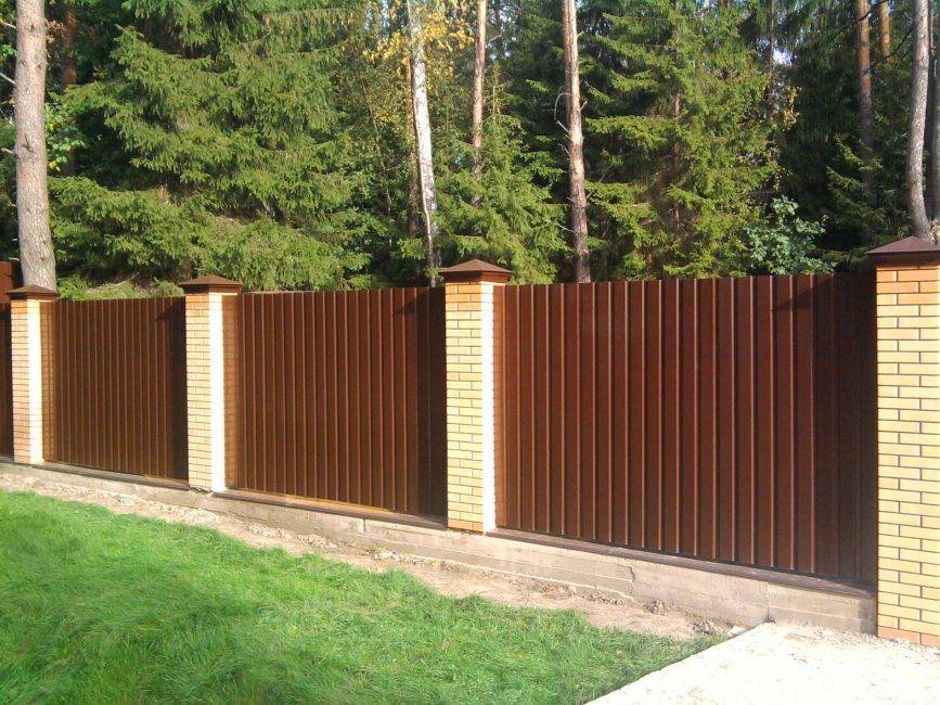 Еще один вид металлического материала для возведения заборов – это профлист. Его низкая стоимость, простота монтирования и долговечность сделали его популярным. На рынках стройматериалов можно найти профлист самых различных цветов и оттенков, конфигурации и размера. Еще один плюс в том, что его поверхность уже покрыта антикоррозийным защитным слоем.