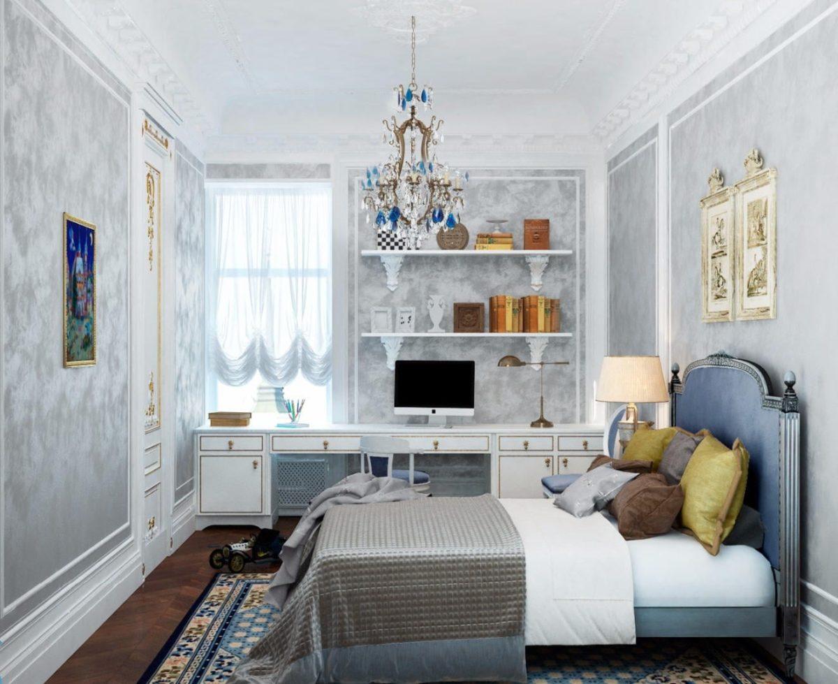 Останется декорировать стены. Вот здесь-то и начнёт «работать Барокко»: арт-объекты в лёгких посеребрённых рамках, деревянные рельефы птиц, герб «семьи», зеркало в недорогом багете с резьбой, подростковая мебель с текстильными вставками и т. д. Ведь детская – это не только функциональное пространство, а целый мир, призванный воспитывать вкус.