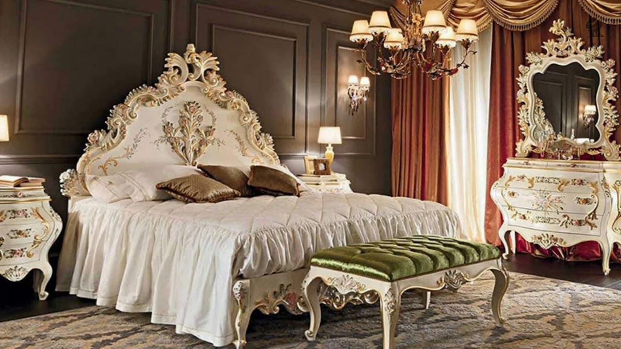 В спальном интерьер будет место мебели «времён Людовиков». Основным цветом рекомендуется выбирать любой, который расширит просторы. Пусть это будет «слоновая кость» с позолотой или молочный оттенок. Впрочем, всю спальню желательно оформить в тотально светлом настроении без включения контрастов.