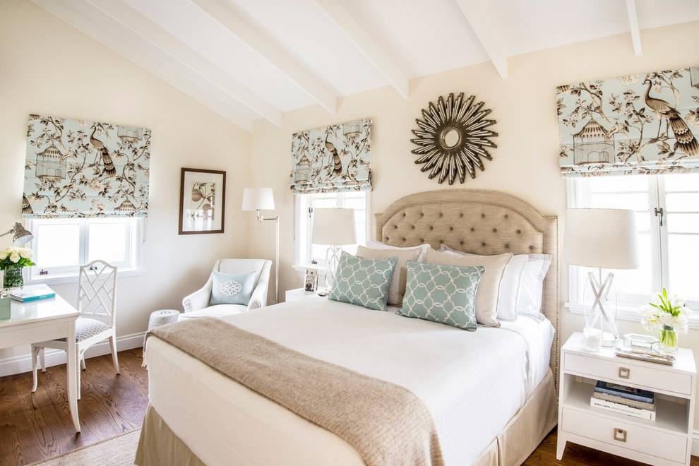 Их оттенок и принт может быть различным. Беспроигрышно смотрятся жалюзи со светлым однотонным полотном, на котором отсутствуют крупные геометрические узоры или сложные витиеватые рисунки, визуально скрадывающие пространство комнаты и делающие окно чрезмерно броским.